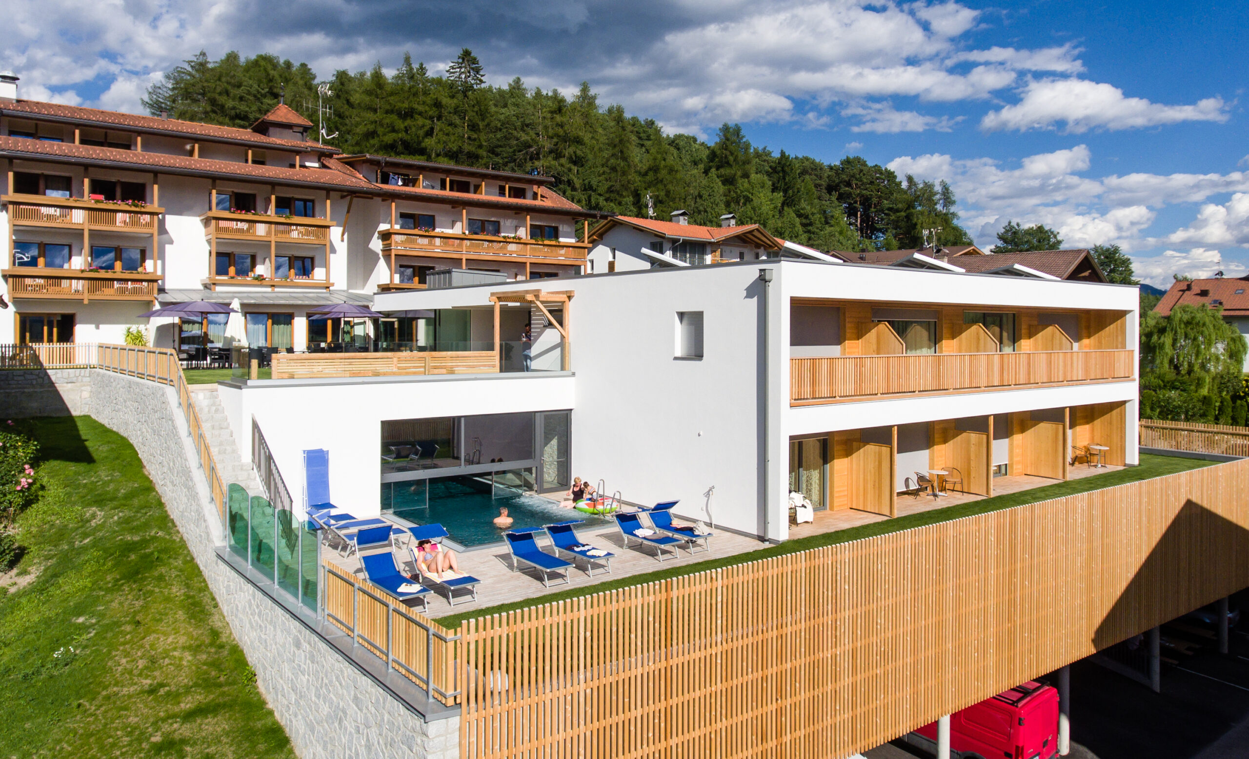 | Sie wohnen im 3-Sterne Superior Hotel Waldrast*** auf dem Sonnenhochplateau in Terenten . Alle Zimmer verfügen über Dusche/Bad, WC, SAT-TV, Safe und Balkon. Das Hotel verfügt über einen sehr schönen Wellnessbereich mit Indoor- und beheizten Outdoorpool, Finnischer Sauna, sowie eine Liegewiese mit einem traumhaften Panorama. www.waldrast.it |